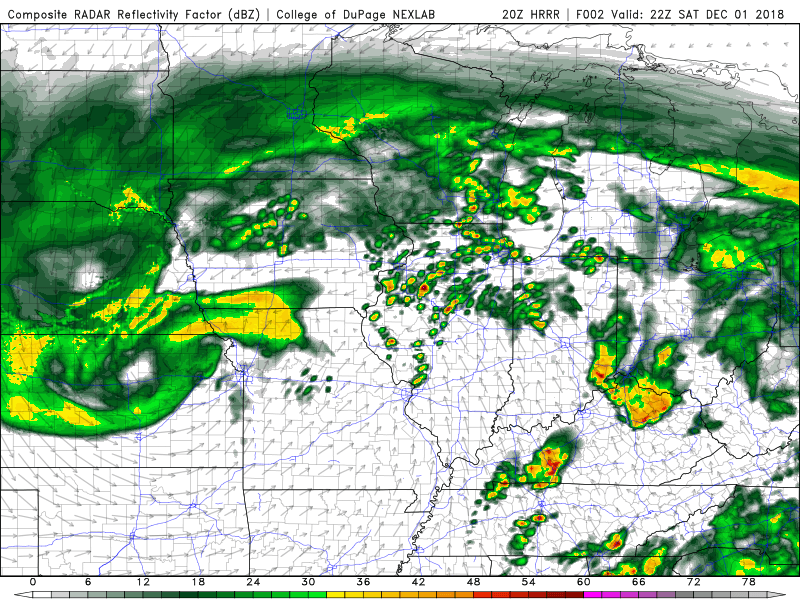 HRRR model runs had also picked up on the potential for thunderstorms, consistently showing thunderstorms erupting just to the east/northeast of St. Louis by 3:00-4:00 pm CST.