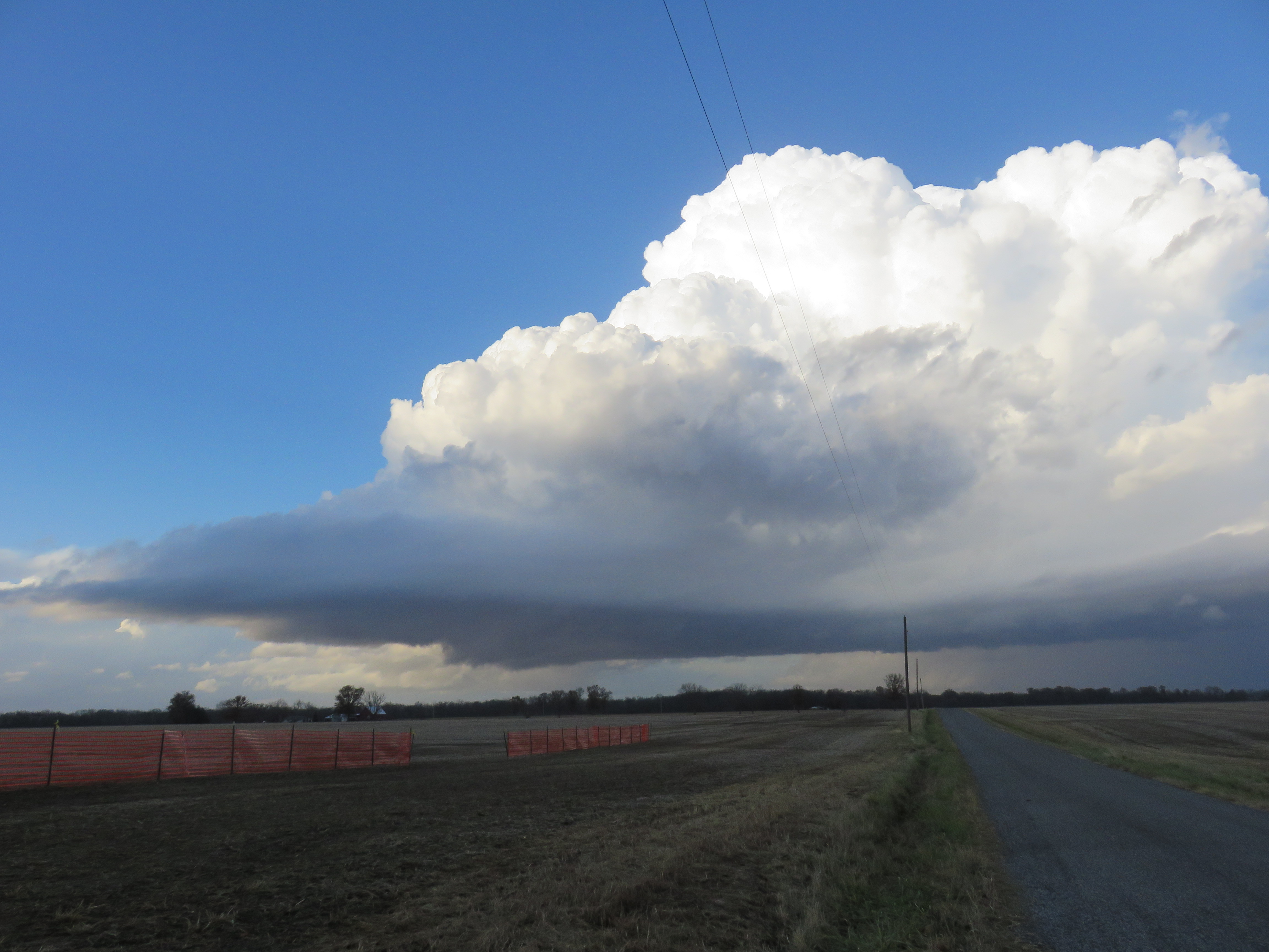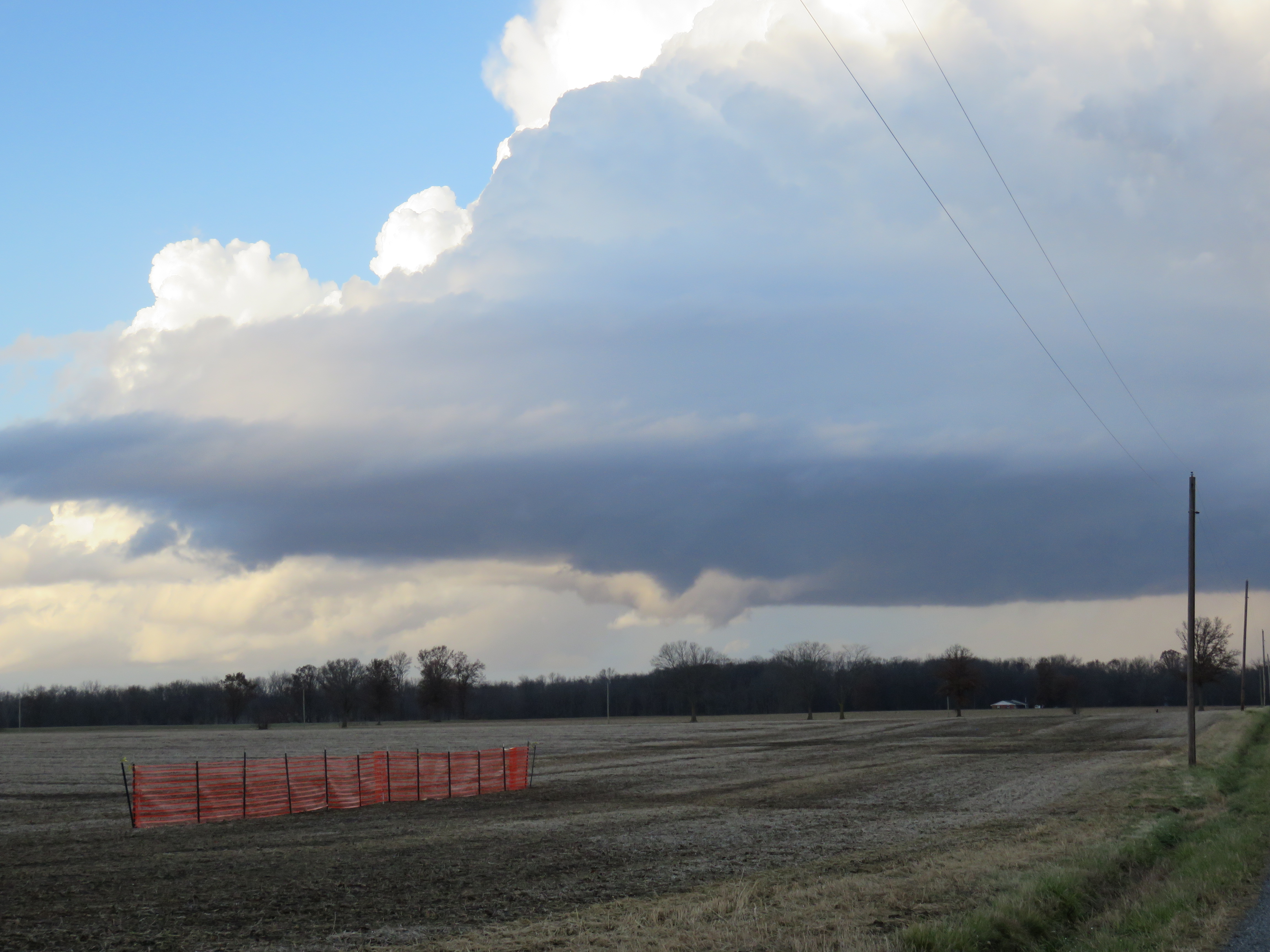 My feeling was that the best chance for severe weather and tornadoes would be further to the north in the vicinity of the warm front, but I didn’t want to travel that far…and I couldn’t shake the fact that the HRRR kept firing thunderstorms right in Madison County. By 1:00 pm, storms did begin to fire along the Interstate 72 corridor from Quincy, IL to Springfield, IL. By 2:15 pm, a tornado watch was issued encompassing most of west-central Illinois.