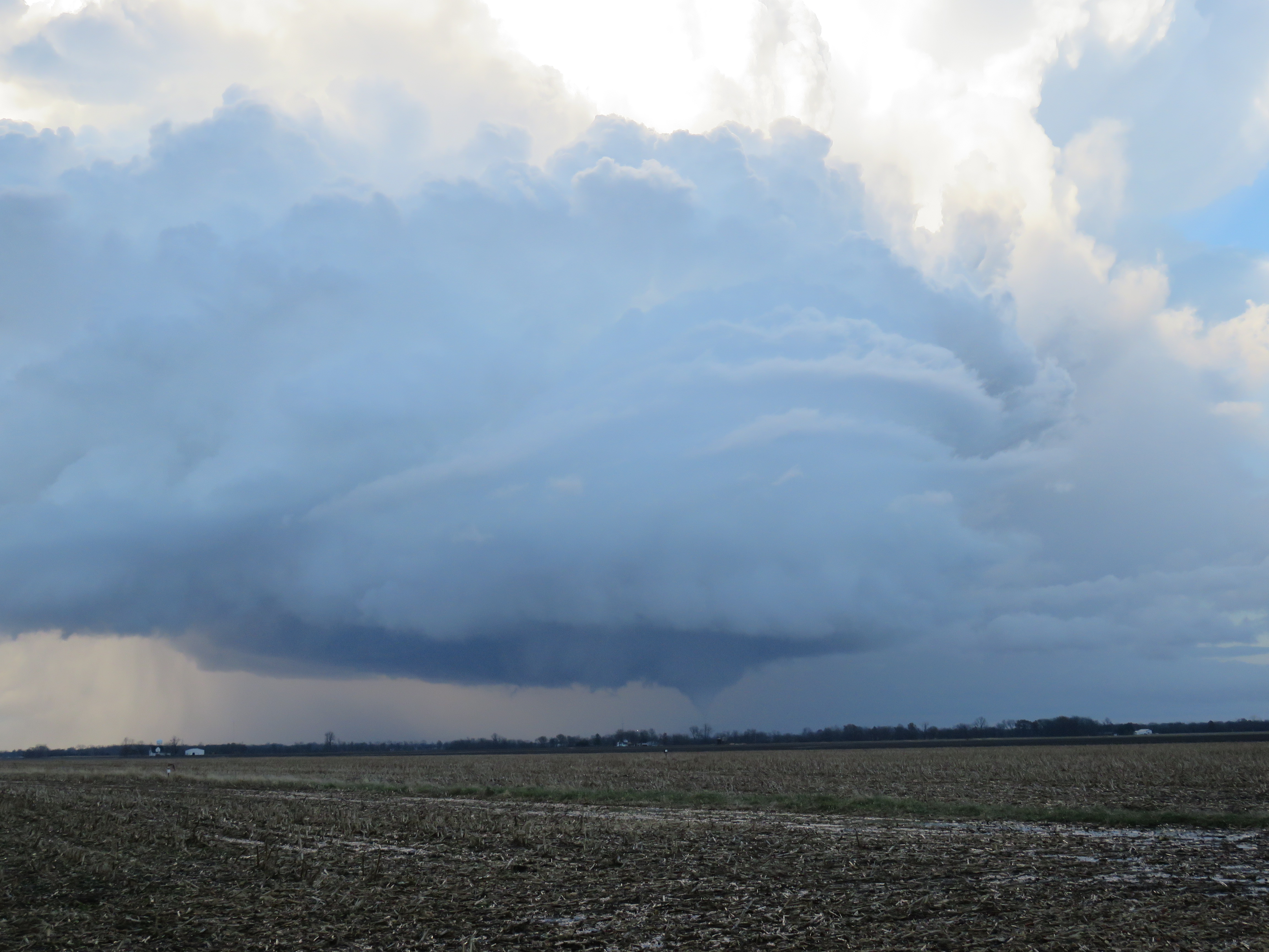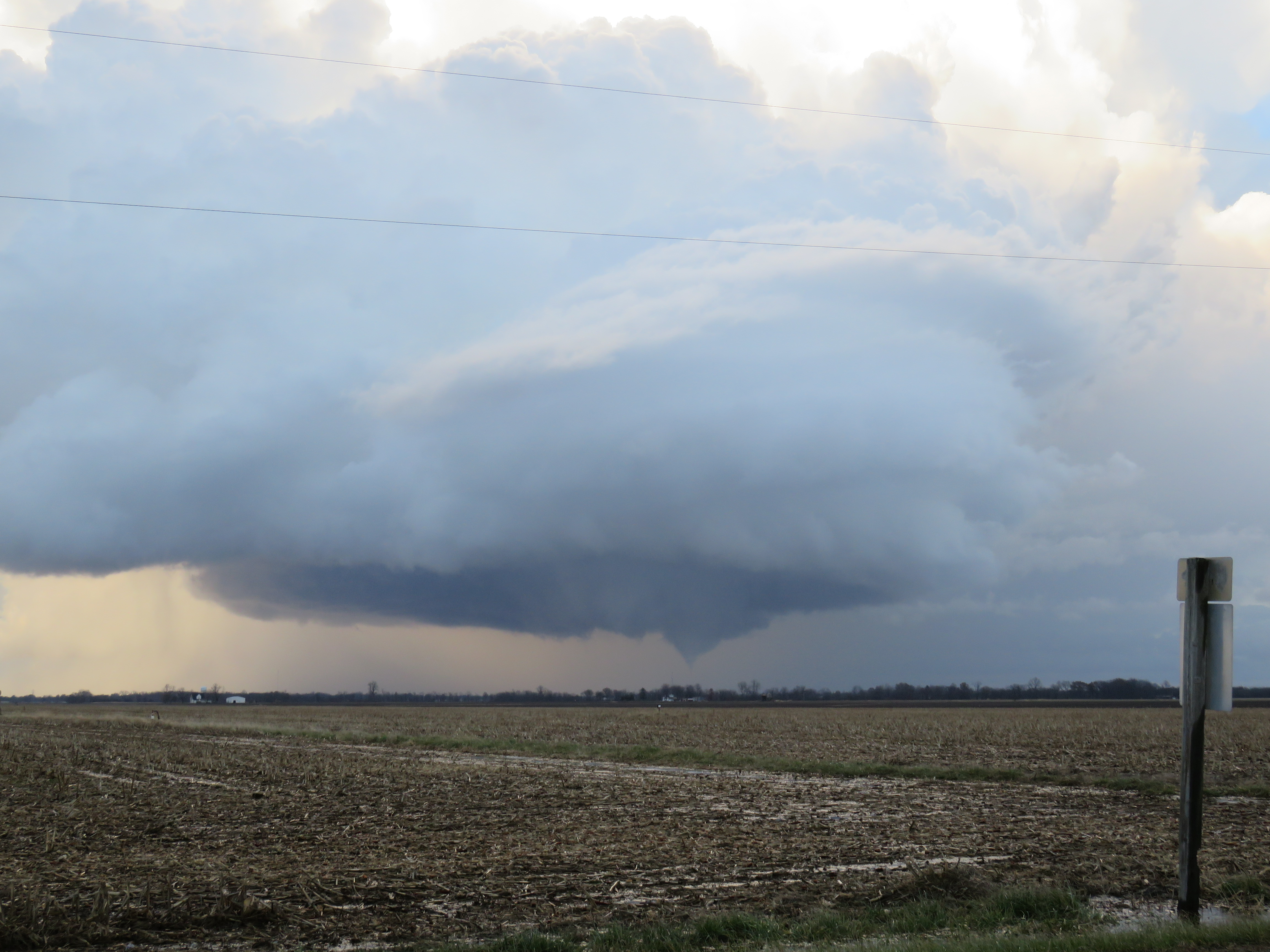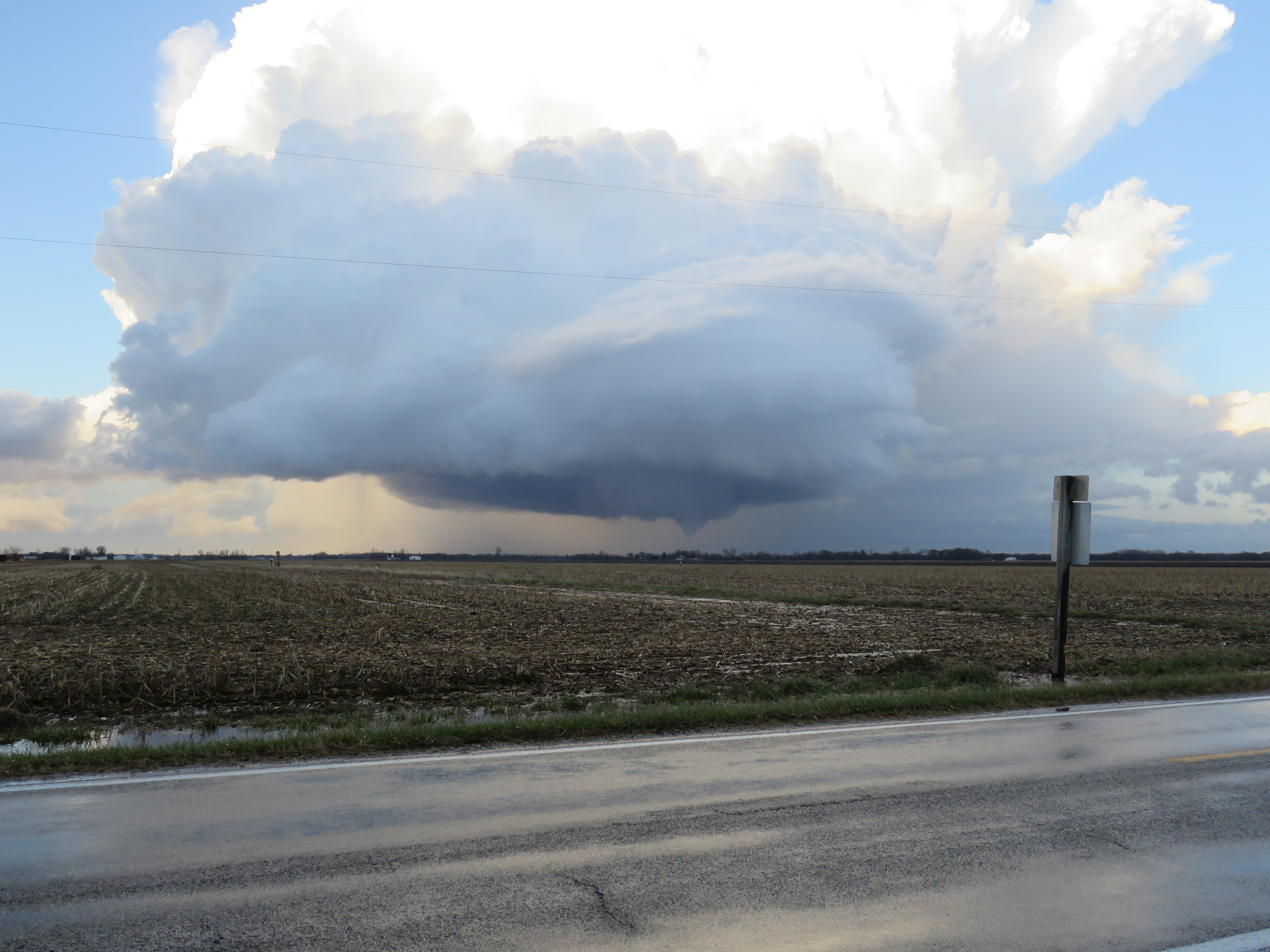 An excellent and more detailed meteorological summary of the event can be found from the National Weather Service Lincoln, IL page on the event. Surface weather analyses in the early to mid-afternoon showed a low over Kansas, associated with an upper level low. An occluded front extended from the surface low toward St. Louis, with a warm front advancing northward across Illinois. South of the warm front, a generally south to southeast wind had brought an unseasonably warm and moist airmass to the region.