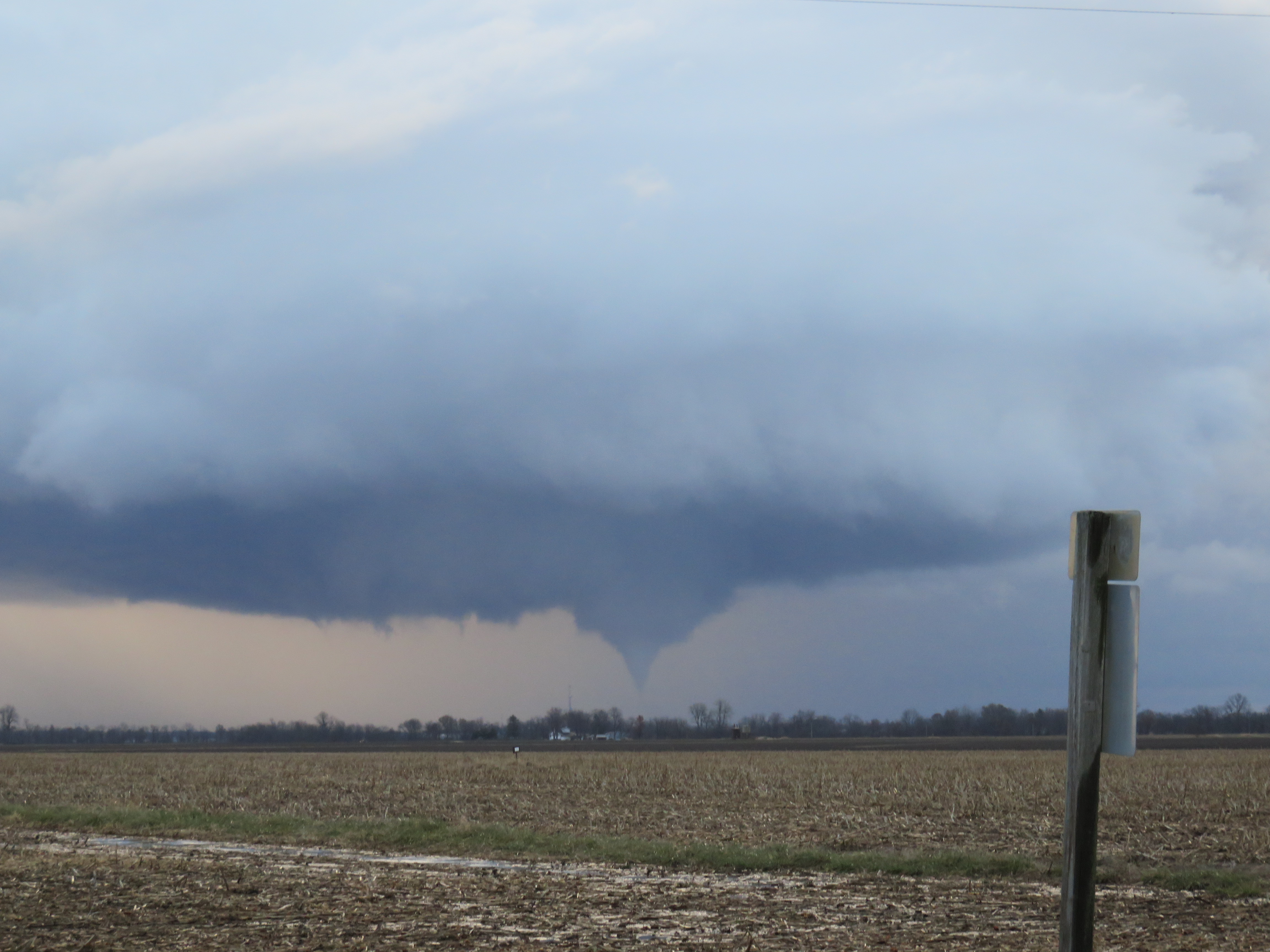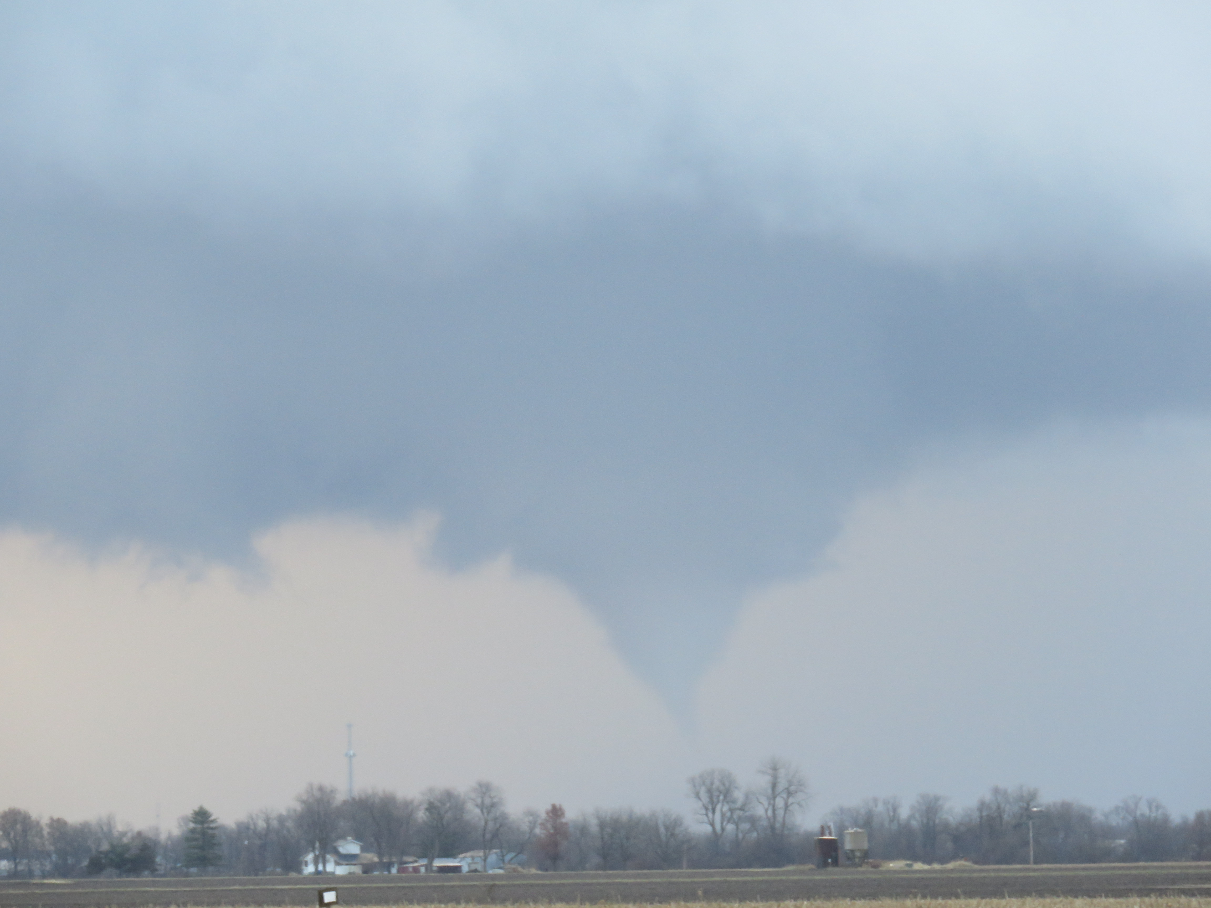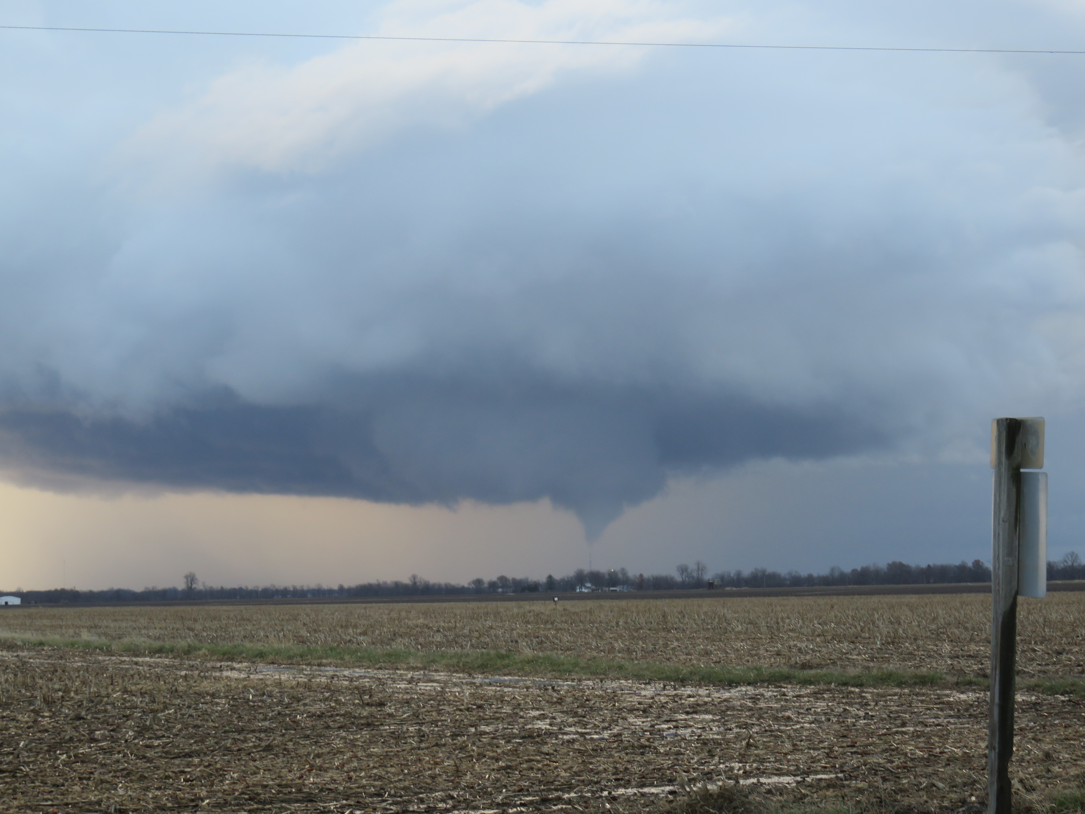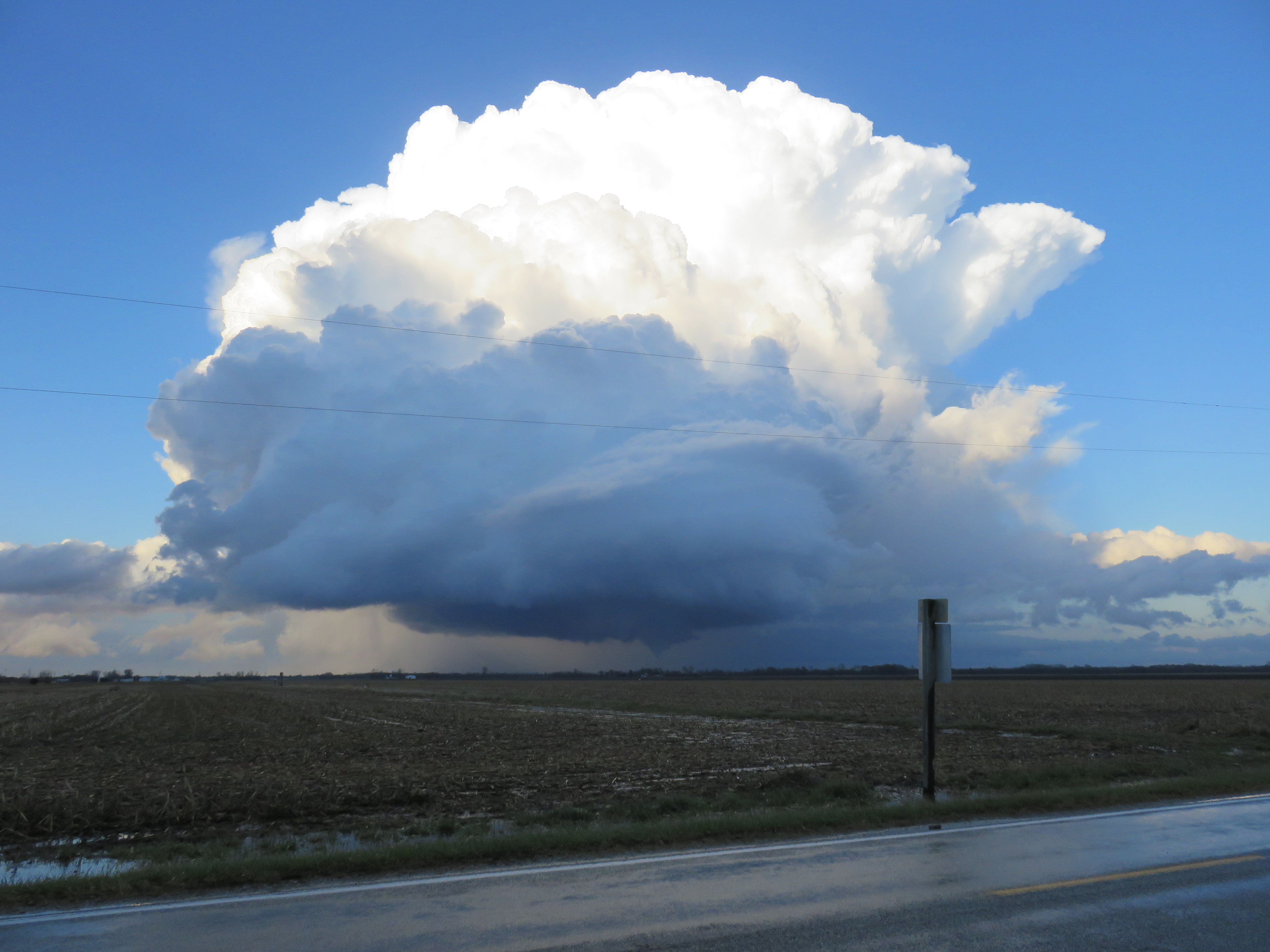An excellent and more detailed meteorological summary of the event can be found from the National Weather Service Lincoln, IL page on the event. Surface weather analyses in the early to mid-afternoon showed a low over Kansas, associated with an upper level low. An occluded front extended from the surface low toward St. Louis, with a warm front advancing northward across Illinois. South of the warm front, a generally south to southeast wind had brought an unseasonably warm and moist airmass to the region.