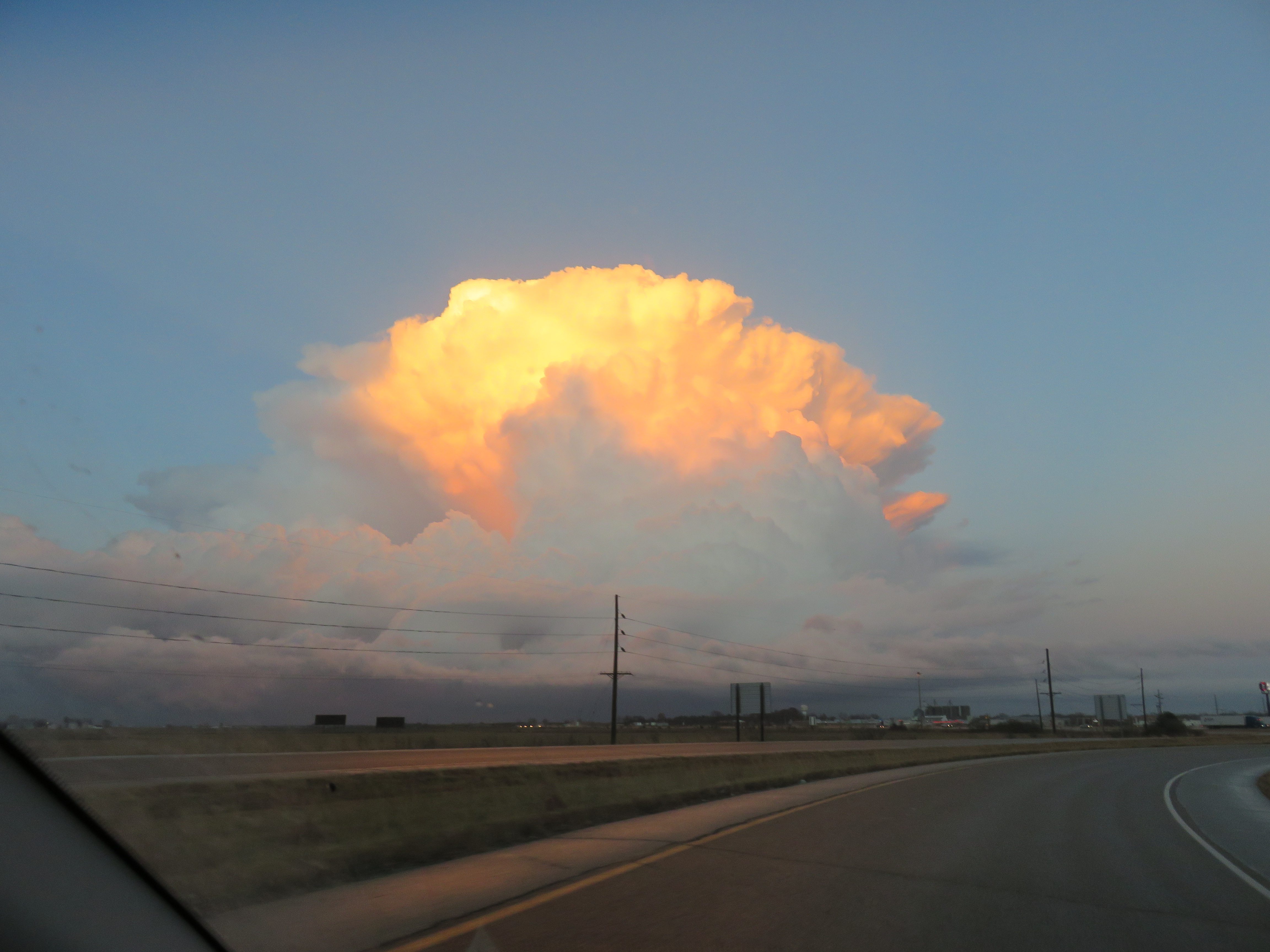 By 4:07 pm the tornado had lifted. At 4:08 pm, a tornado warning was issued for the storm, including southeastern Macoupin and west-central Montgomery County. After watching the tornado, I made the mistake of continuing north on IL-4, which brought me into the middle of Staunton, IL. It took what seemed like forever to get through Staunton and I should have turned back south on IL-4 and continued north on I-55 instead. After making it back to I-55, I exited at Mt. Olive and followed the storm on Old Route 66 from there to Litchfield, IL. I caught a brief glance of a tornado to the northeast but had no real opportunity to pull off or catch up with the storm. Arriving in Litchfield, I noted some small hail that had fallen a few minutes earlier. I decided to end the chase at this point and head back home via I-55 south and I-270 west, capturing one last shot of the storm illuminated by the setting sun. Overall, it was a very satisfying chase, especially considering it was successful and on December 1st to boot! The round trip was just over 80 miles.